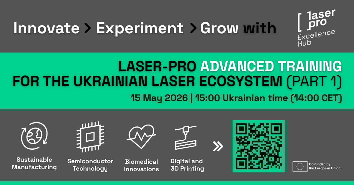 If you are part of the laser, photonics, or deep-tech community, this online training is a chance to connect with people who are actively shaping the field - not just talking about it. Join the discussion, bring your questions, and be part of building a stronger, more connected Ukrainian and European innovation ecosystem.